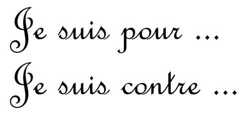 | Je suis pour. Είμαι υπέρ. | Je suis contre. Είμαι κατά (δεν συμφωνώ). | Bof! (Επιφώνημα που δεν μεταφράζεται ακριβώς στα ελληνικά. Δείχνει αδιαφορία ή αβεβαιότητα.) |