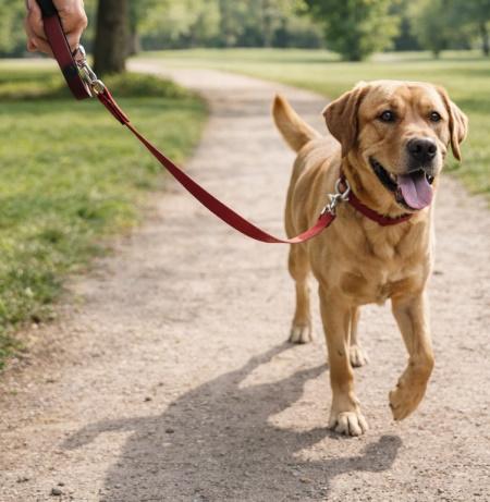 Κράτα τον σκύλο με λουρί.