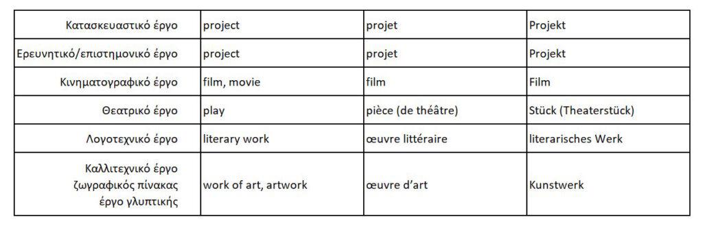Η λέξη έργο δεν μεταφράζεται πάντα ως project (EN), projet (FR) ή Projekt (DE).