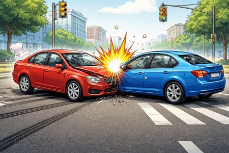 Two cars collided at the intersection.