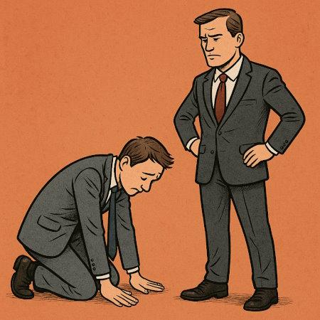 Er nahm eine unterwürfige Haltung gegenüber seinem Chef ein